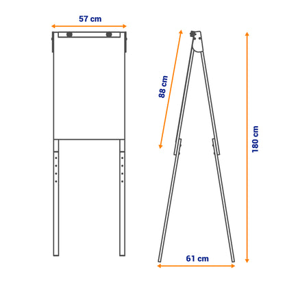 - Tela composta em chapa de fibra de madeira MDF de 3 mm (com variação de 0,3 mm) com acabamento natural, para uso de bloco de papel para Flip Chart. Medindo 57,6 cm de largura e 87.6 cm altura.