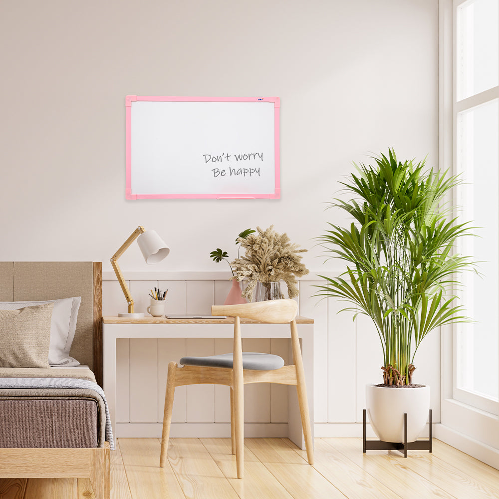 Compre agora a Lousa Quadro Branco UV Moldura MDF Revestido Soft Rosa e dê um toque de elegância e produtividade ao seu espaço!