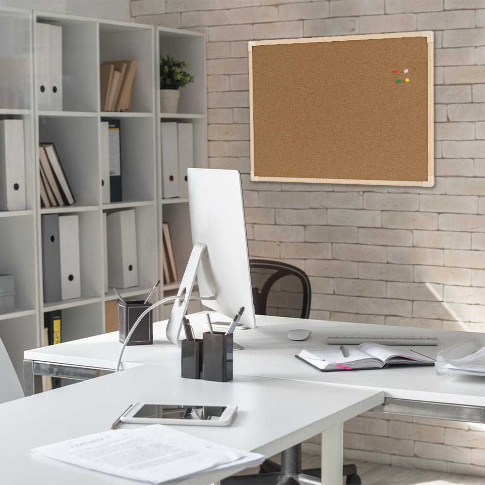 Quadro de Aviso Cortiça para Mural de Avisos Moldura MDF Revestido Carvalho combina funcionalidade e elegância para seu espaço.